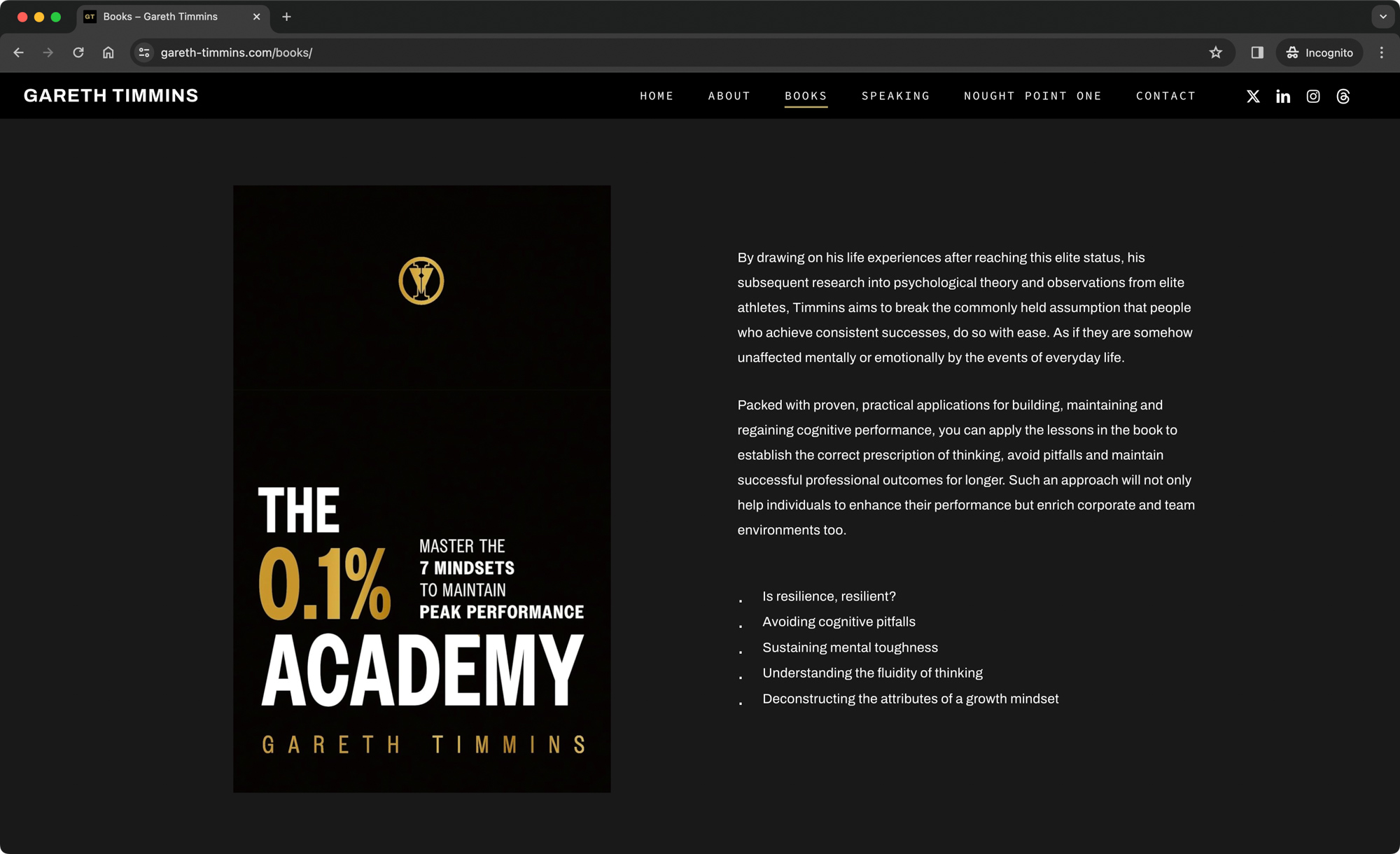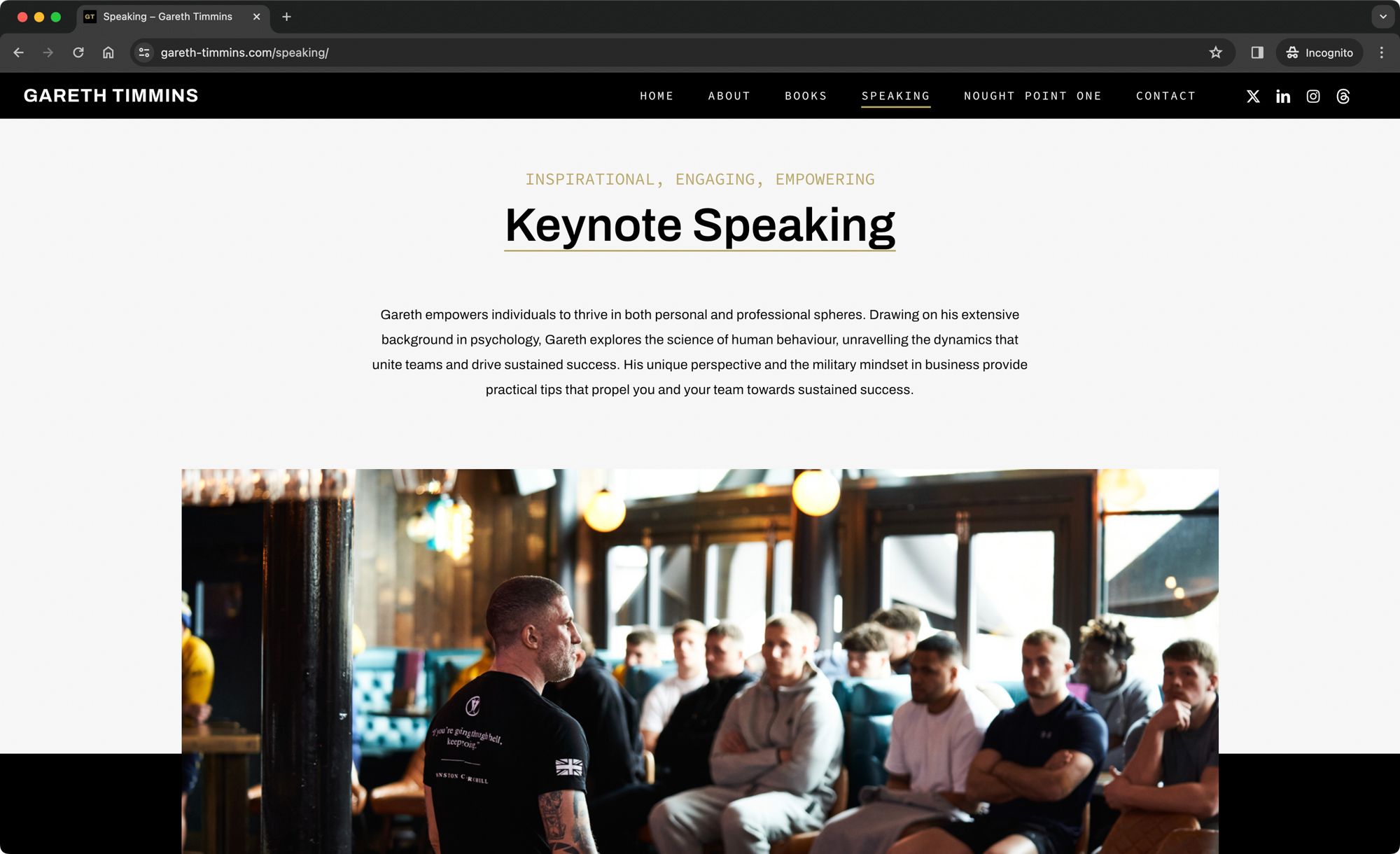 Gareth Timmins is a former Royal Marines Commando, accomplished author, engaging public speaker, and empowering mindset coach. Following our successful collaboration on the NOUGHT POINT ONE website redesign, Gareth asked me to create his new personal website. With his second book set to launch in summer 2024, Gareth aimed to strengthen his online presence, providing a platform for visitors to delve into his keynote speaking, coaching, NOUGHT POINT ONE project, and literature.