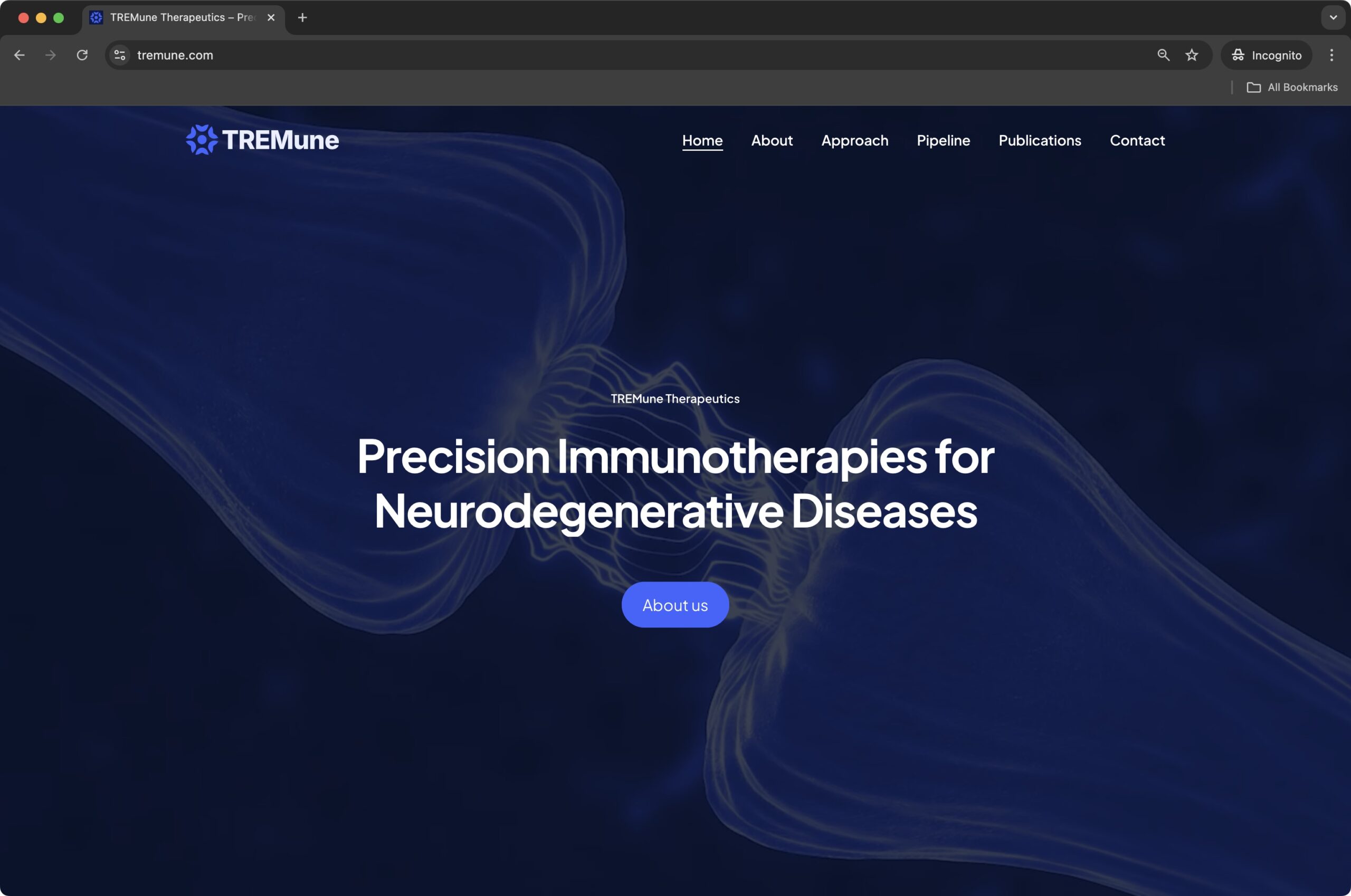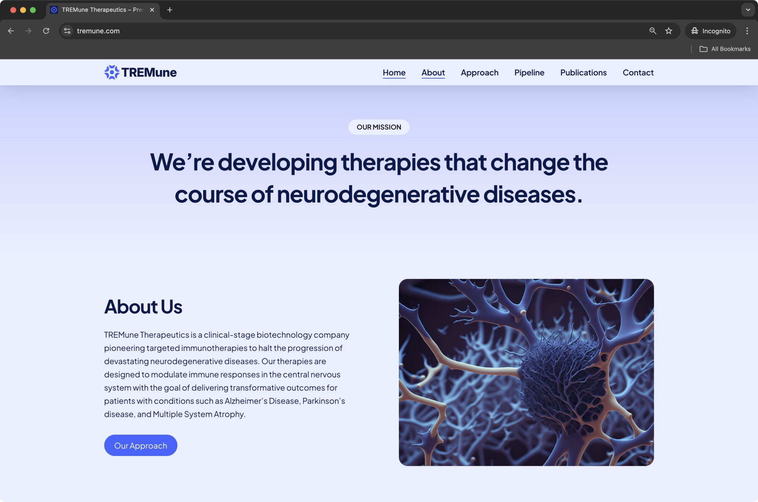 TREMune is a biotech start-up developing next-generation treatments in immunology. As a new company entering the market, they needed a simple but credible online presence to communicate their vision to investors, partners, and future collaborators.